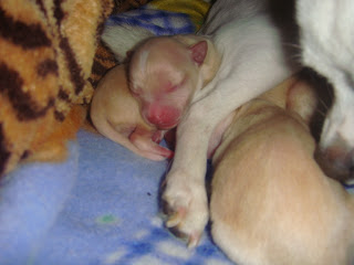 Han sido tres preciosos cachorrillos. Dos han nacido pequeños (una hembra y un macho) estos son Chidencos, sin embargo el tercero y que tardó más de una hora en salir parece más un Podenahua. Sin embargo hasta que no se vayan haciendo mayores no sabremos a que nueva raza pertenecen.